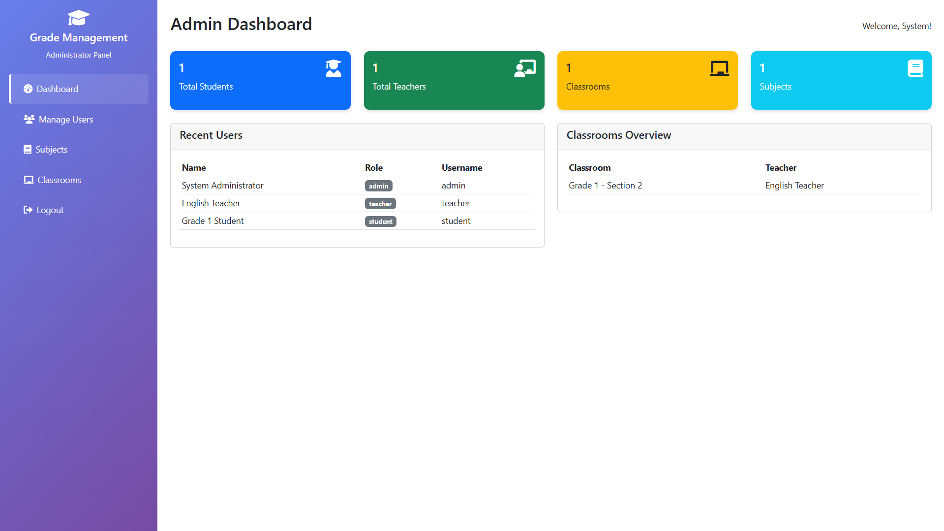 - Teacher: teacher / teacher123